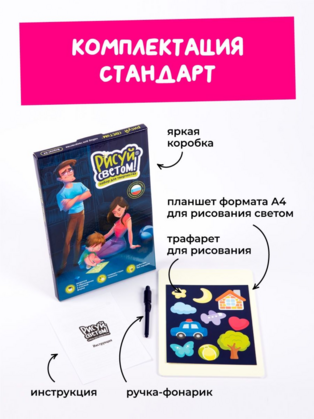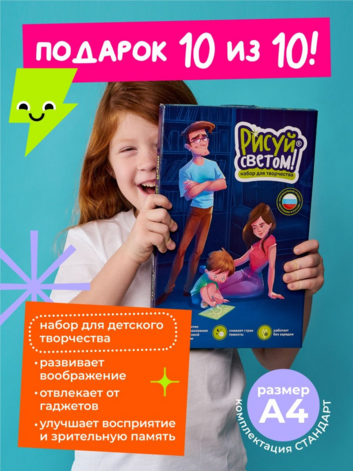 Наборы "Рисуй светом" помогают развитию детей в необычной игровой форме - дети лучше запоминают предметы, животных, буквы и цифры.